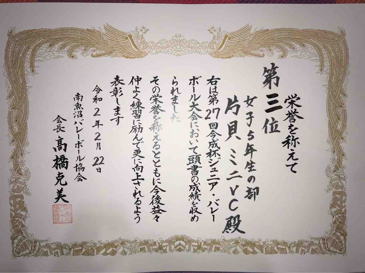 3位:片貝ミニバレーボールクラブ