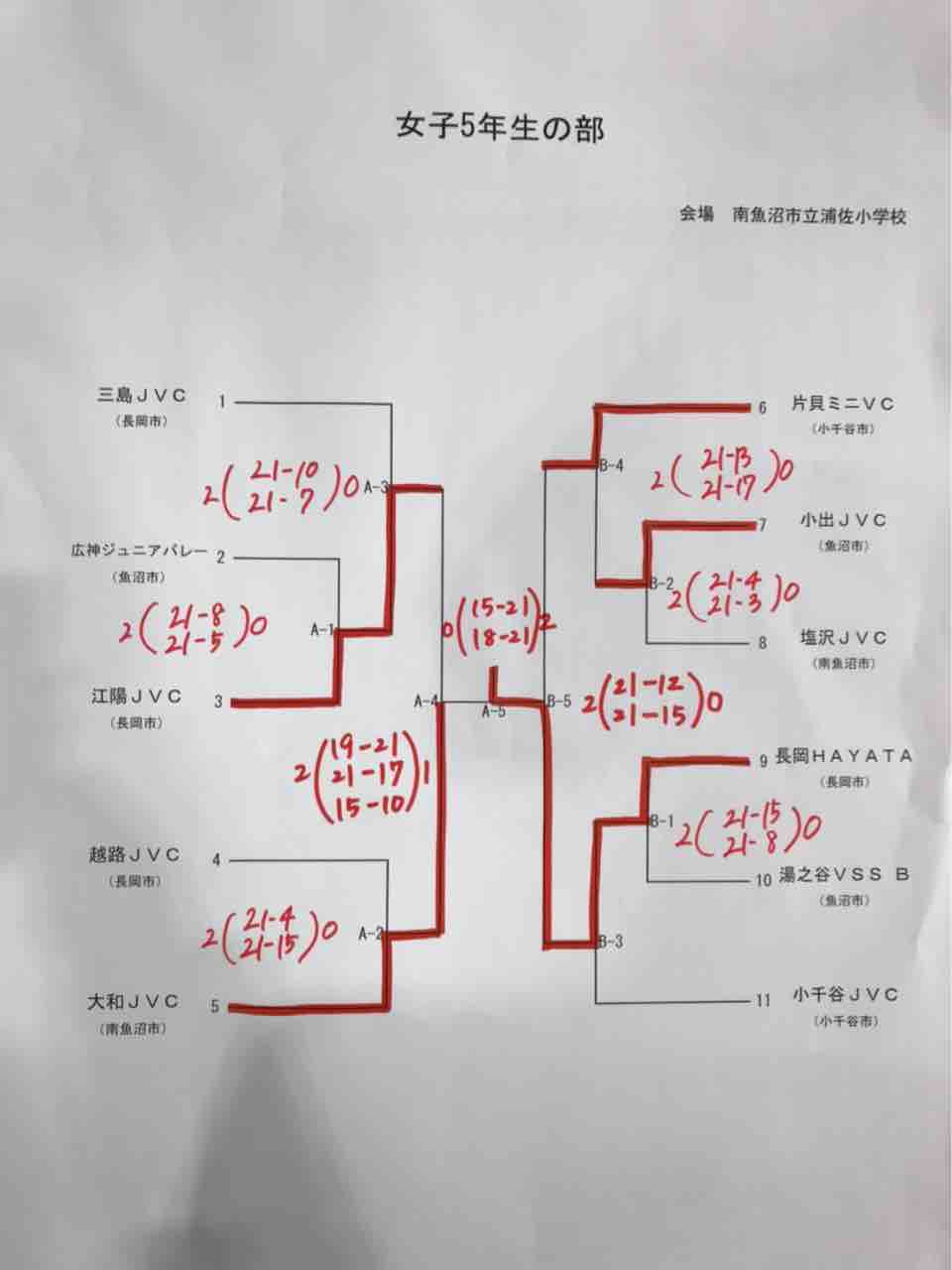 越路・片貝 2-0 寺泊JVC (21-4 21-11)