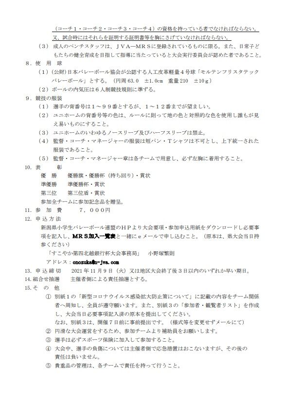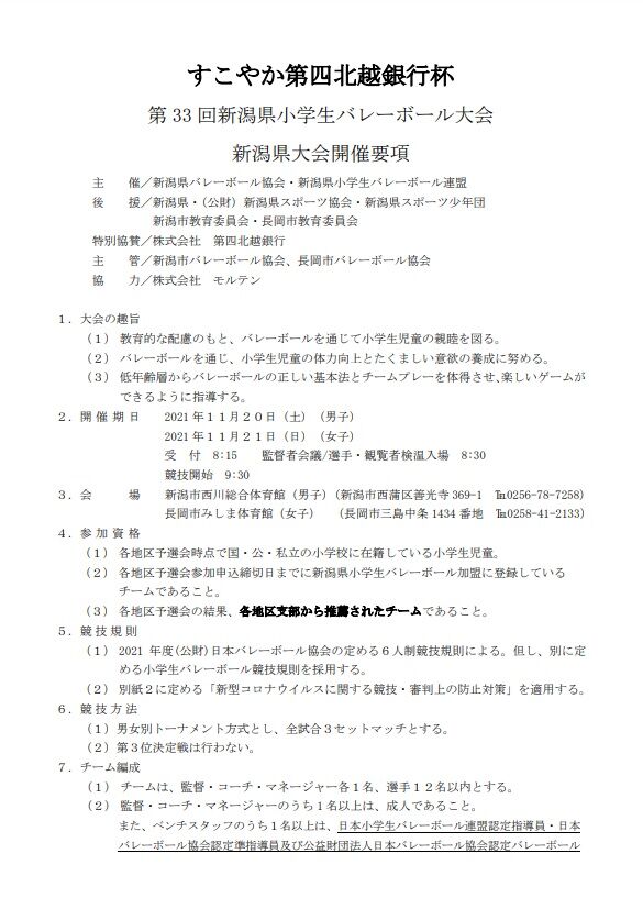 すこやか第四北越銀行杯第33回新潟県小学生バレーボール大会新潟県大会