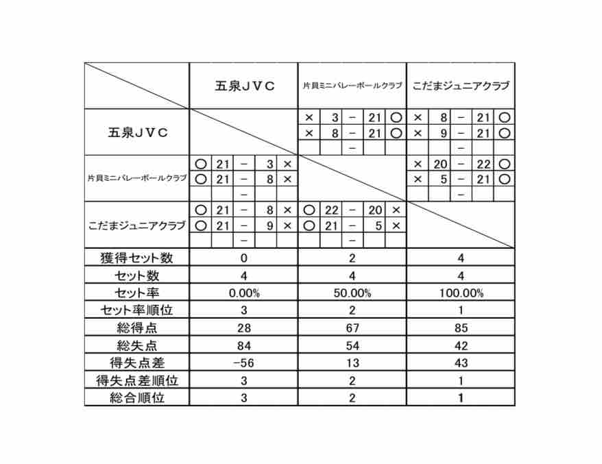 片貝MVBC 0-2 こだまジュニアクラブ (20-22 5-21)