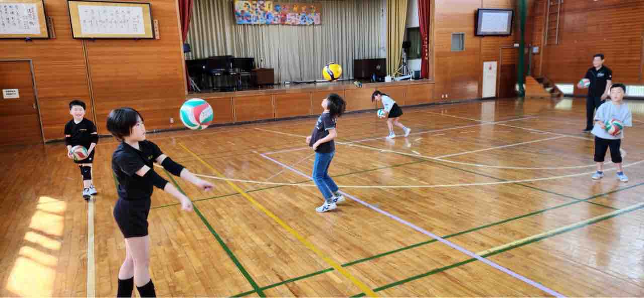 サーブ練習では、初参加の2年生の男の子は、最初はソフトバレーを使って練習をしましたが、最後にはバレーボールでも、サーブが入るようになりました!